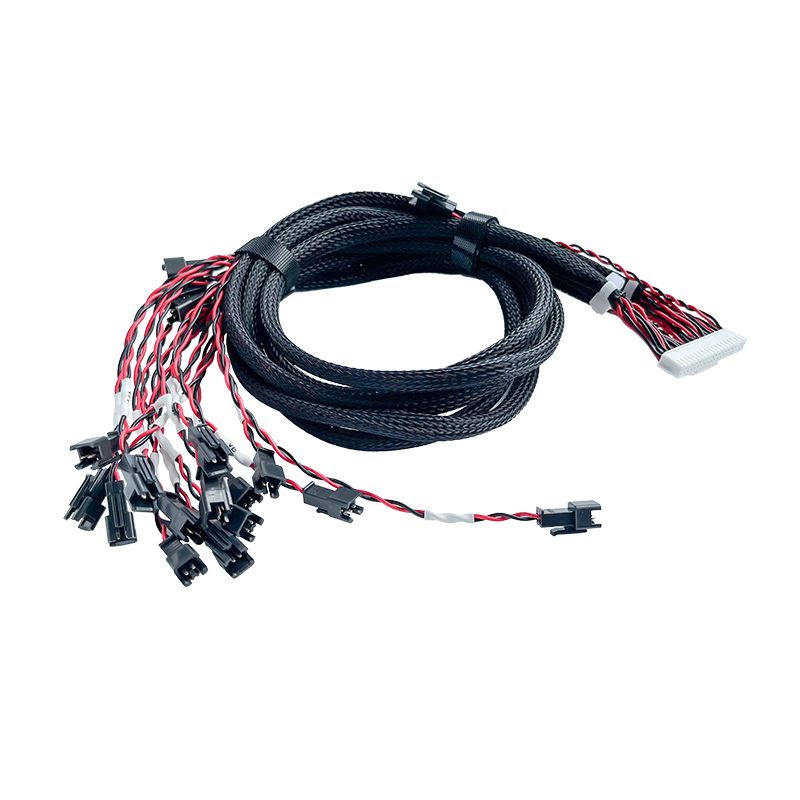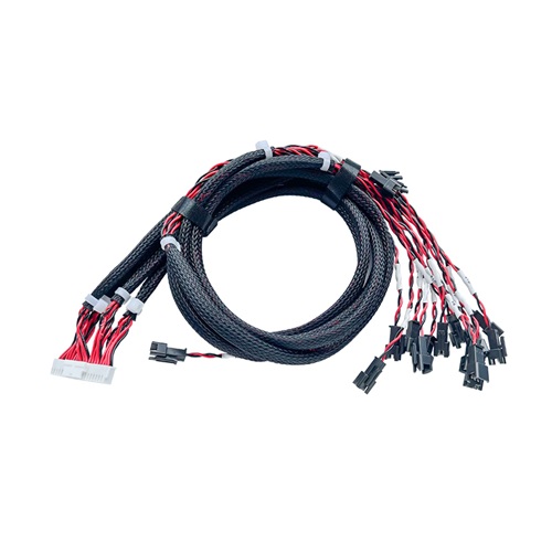 This custom cable assembly adopts 1007#26 red and black stranded copper wires for excellent conductivity and flexibility. Each wire set is equipped with SMR-02V connectors at various lengths, all connected to an A2008H-2×20P interface. The harness is professionally assembled to guarantee efficient signal transmission and stable power output under continuous operation.