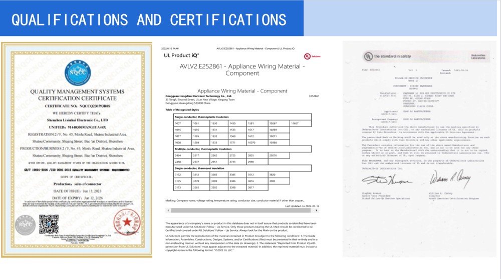 Tutti i prodotti sono certificati UL, ISO e RoHS2.0, garantendo la conformità agli standard internazionali di sicurezza e qualità.