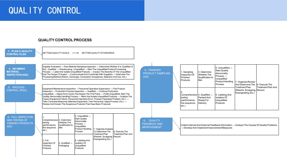 Campionamento finale QA: ispezioni di campionamento in uscita, gestione delle anomalie, analisi delle cause principali e miglioramento continuo.