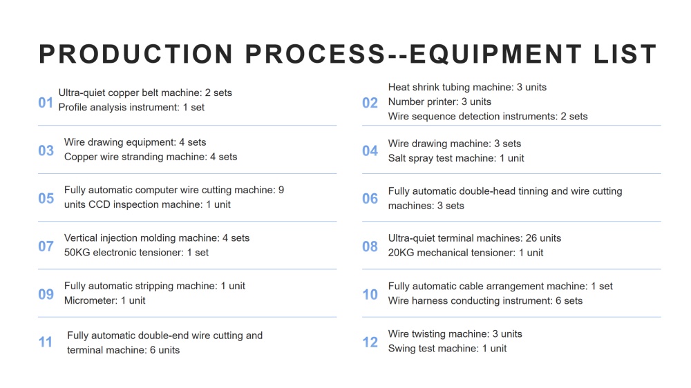 Questa solida capacità produttiva ci consente di fornire cablaggi di alta qualità, in grandi volumi e con prestazioni stabili.